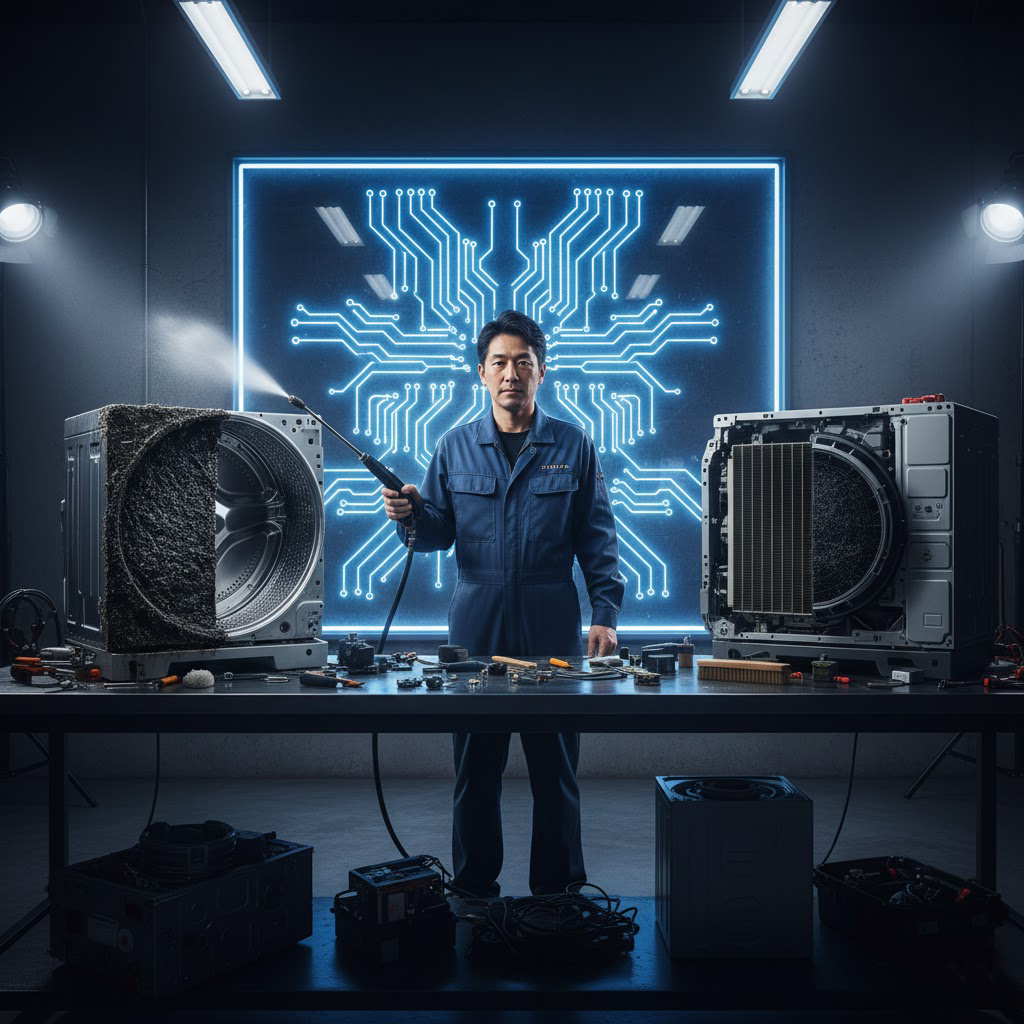 第1章:表面的な「清掃」と、匠の「洗浄」の決定的な違い 1-1. 家電の内部は、ブラックボックス化している 現代の家電は、省エネ性能や多機能化と引き換えに、内部構造が極めて複雑になっています。一般の方がフィルターを洗うだけでは、内部に蓄積した「...